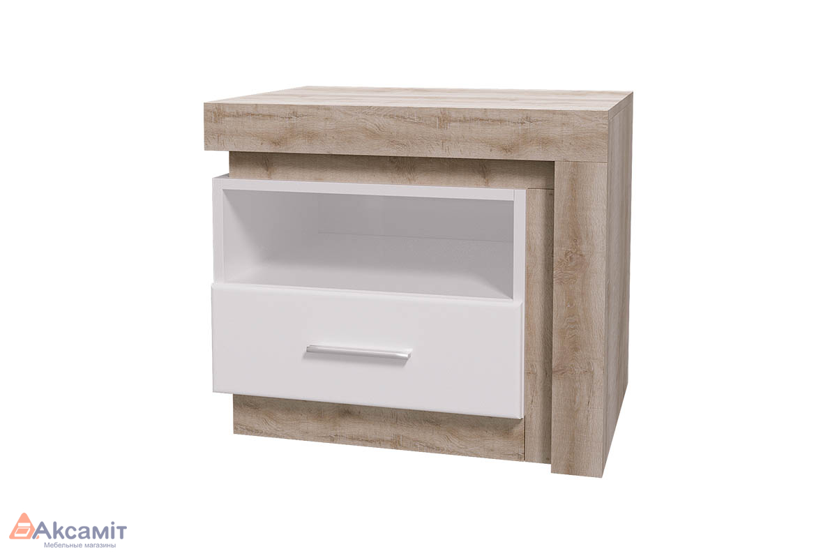 Тумба оборудована небольшим выдвижным ящиком и открытой нишей.