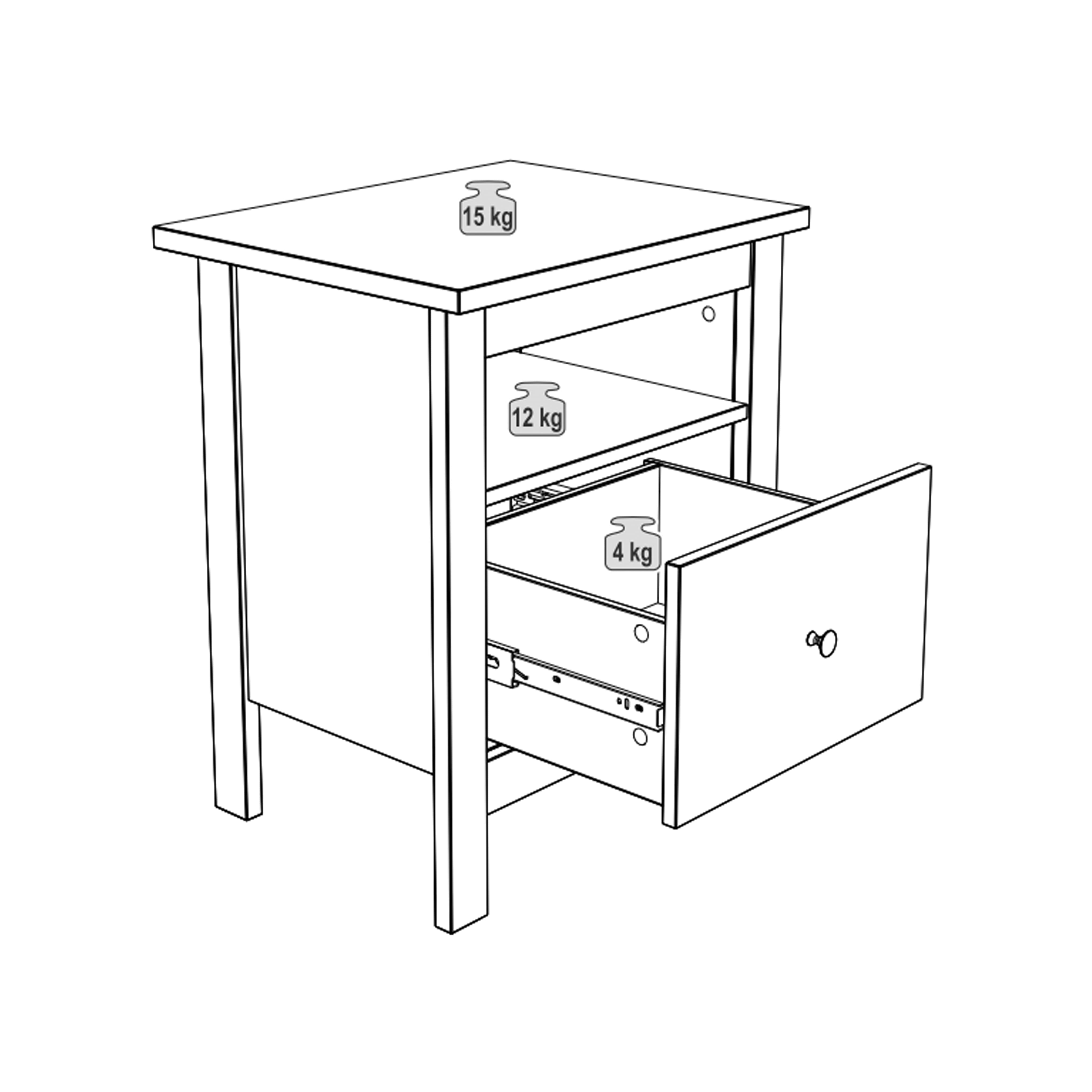 Размер (ШхВхГ): 48x60x40 см. Материал: массив сосны.