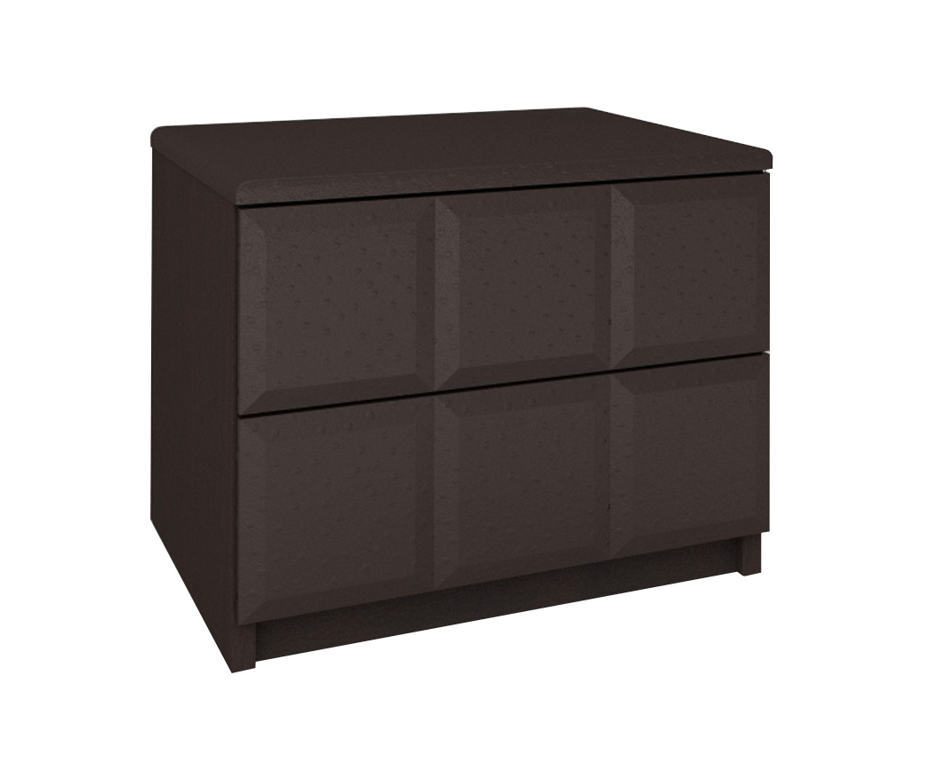 Компактный стильный комод на два выдвижных ящика. Фасад разбит на шесть квадратов, имитурия поверхность плитки шоколада. Крышка комода имеет закругленную кромку с торцов.