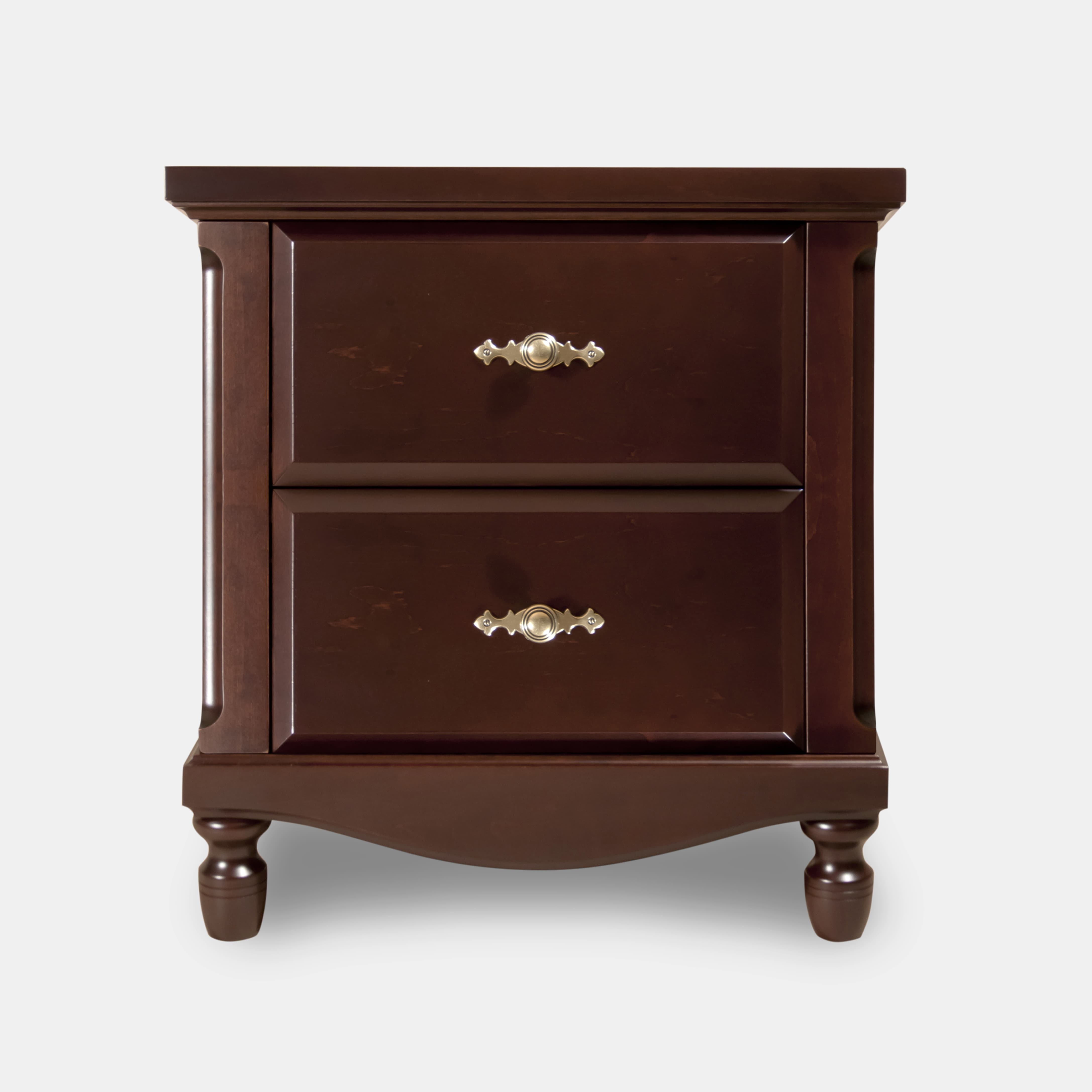 Модель тумбочки для спальни в классическом стиле из массива ольхи, который всегда остается актуальным во многих интерьерах. Изделие в богатом, насыщенном красно-коричневом оттенке дополнено точеными ножками и витиеватой фурнитурой с позолотой.