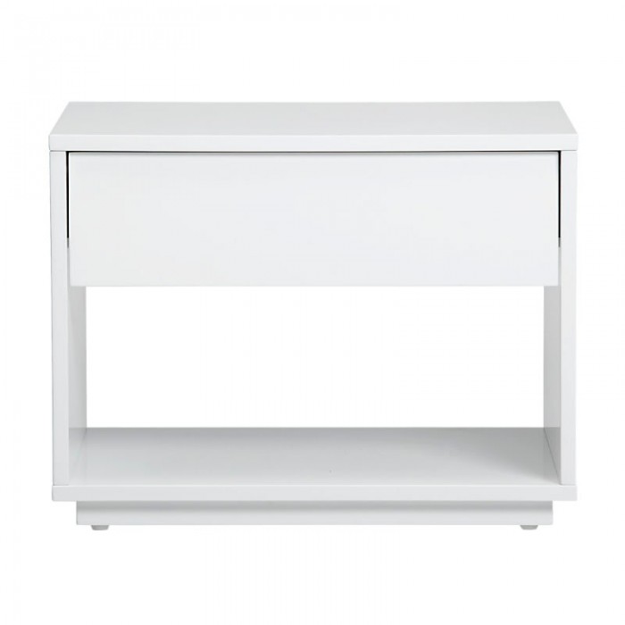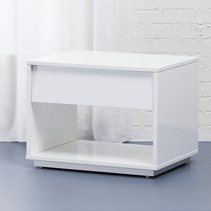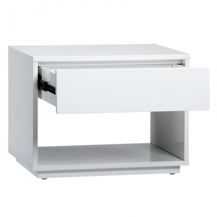 Тумбочка «AN016» представлена в лаконичном дизайне, с верхней выдвигающейся шуфлядой. Глянцевая поверхность отлично гармонирует с общим лаконичным дизайном изделия. Внизу имеется большая открытая полка для хранения вещей. На гладкую столешницу можно поставить разнообразные вещи или аксессуары, например, фоторамки.