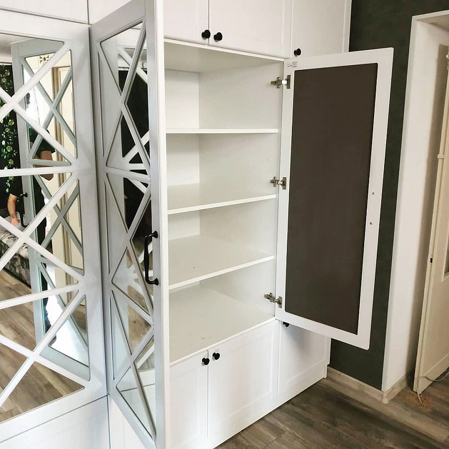 код 136419В фасадной части использовали перекрестия с зеркальным наполнением.