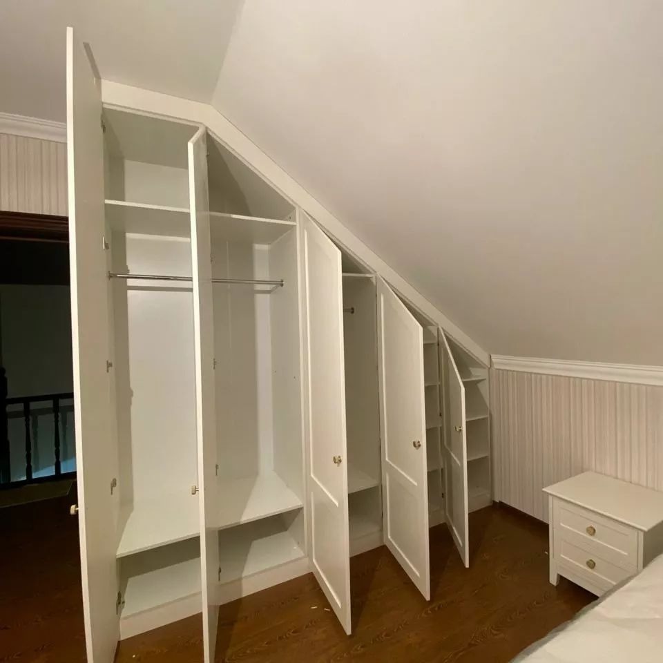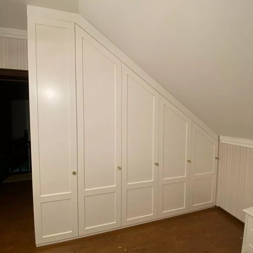 Крашеный фрезерованный шкаф из МДФ на мансардный этаж