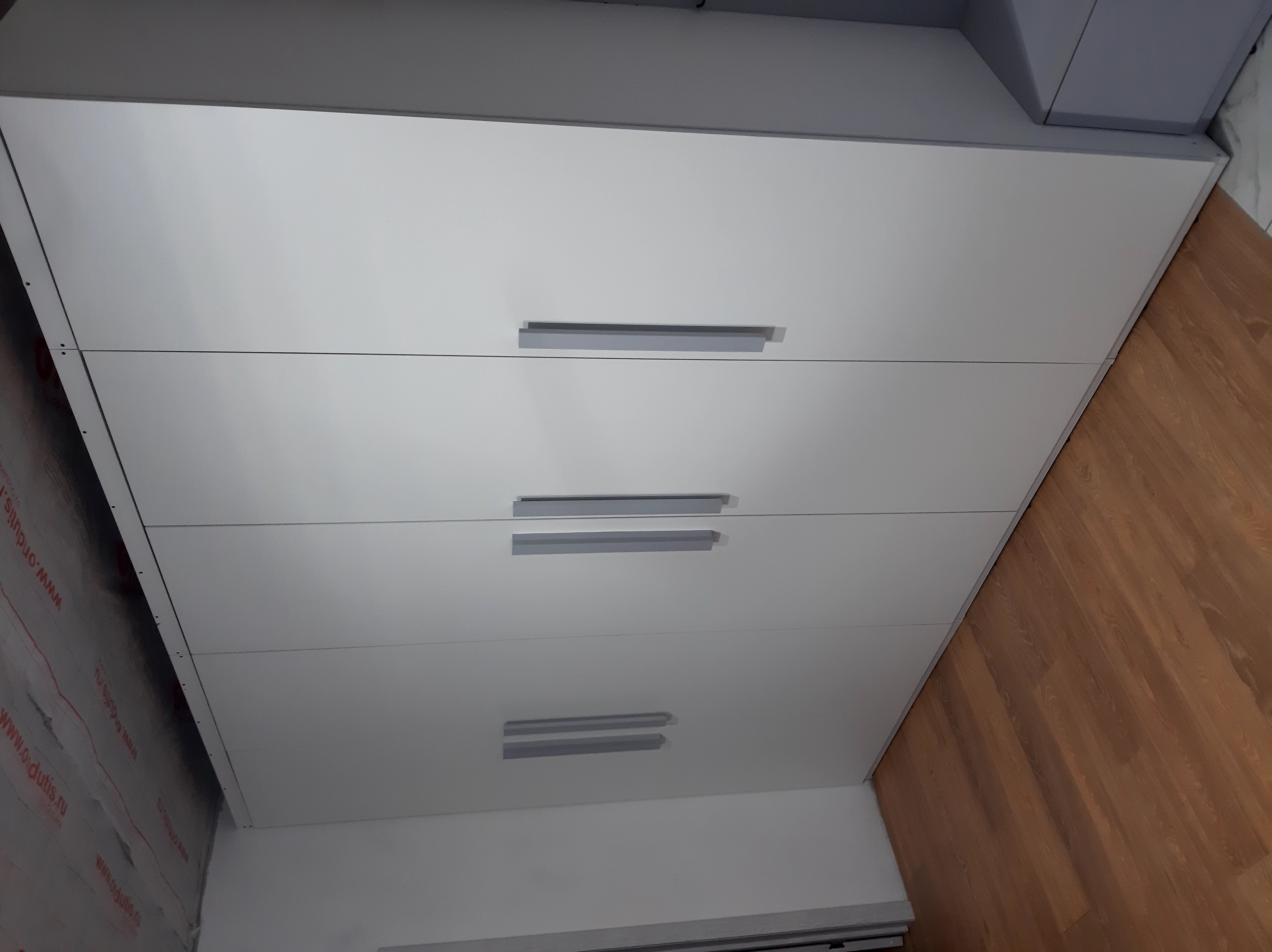 Шкаф со складными дверями. Направляющие с доводчиками. Штанга. Выдвижные ящики.