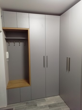 код 105889Функциональная серый шкаф с местом для верхней одежды и обуви.