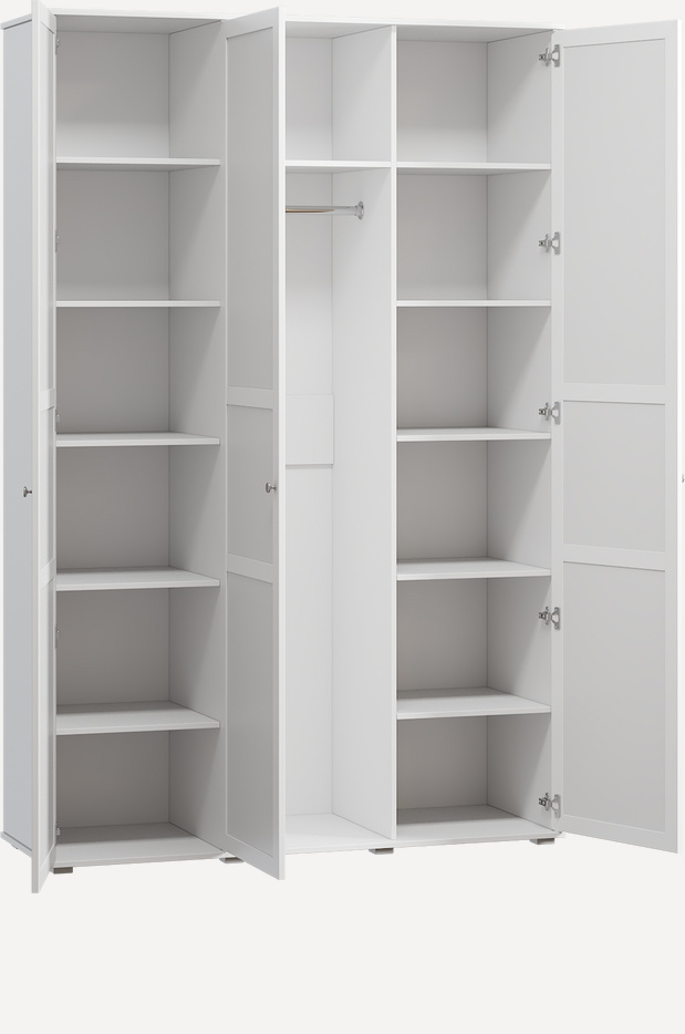 Распашной шкаф – классическое решение для хранения одежды и личных вещей. Надежность и простота конструкции гарантируют долгий срок службы, а грамотное внутреннее наполнение – вместительность и легкий доступ к содержимому. Современный дизайн корпуса и фасадов позволят легко разместить модель в интерьере любой комнаты: гостиной, спальни, прихожей и даже офиса.