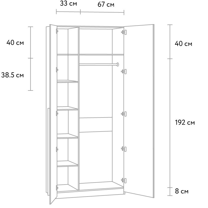 Размер (ШхВхГ): 64х200х48 см. Материал: ЛДСП, МДФ.