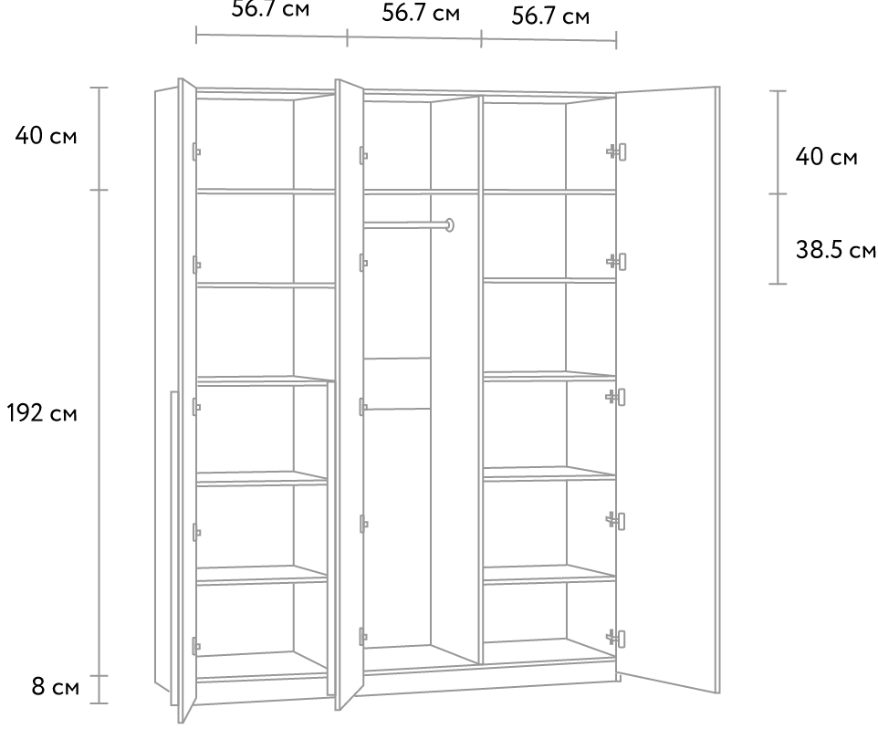 Размер (ШхВхГ): 94х205х41 см. Материал: ЛДСП, МДФ.
