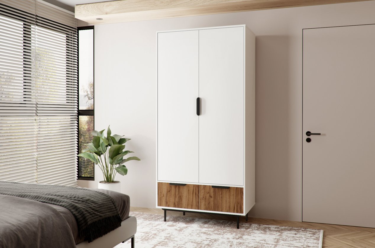 Распашной шкаф «Леванте-2-100-200» в элегантном белом цвете, который станет стильным дополнением к вашему интерьеру.
