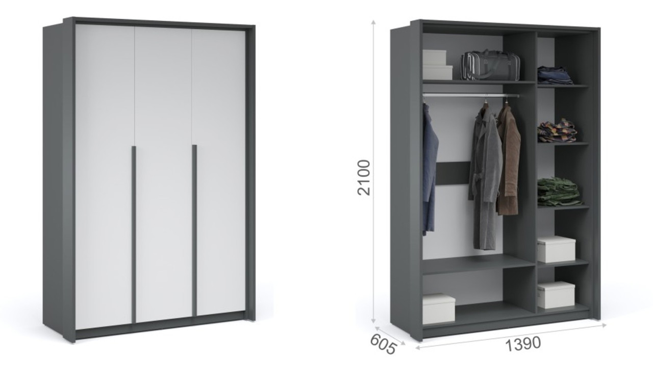 Распашной шкаф «Мишель 3дв» Антрацит/белый жемчуг Imperial