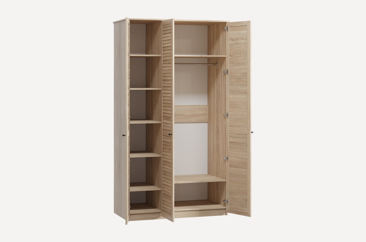 Классическая конструкция с тремя распашными дверцами, привлекательные фасады и функциональное внутреннее наполнение – шкаф серии Монмарт-3 станет незаменимым в современной гостиной, спальне или прихожей.