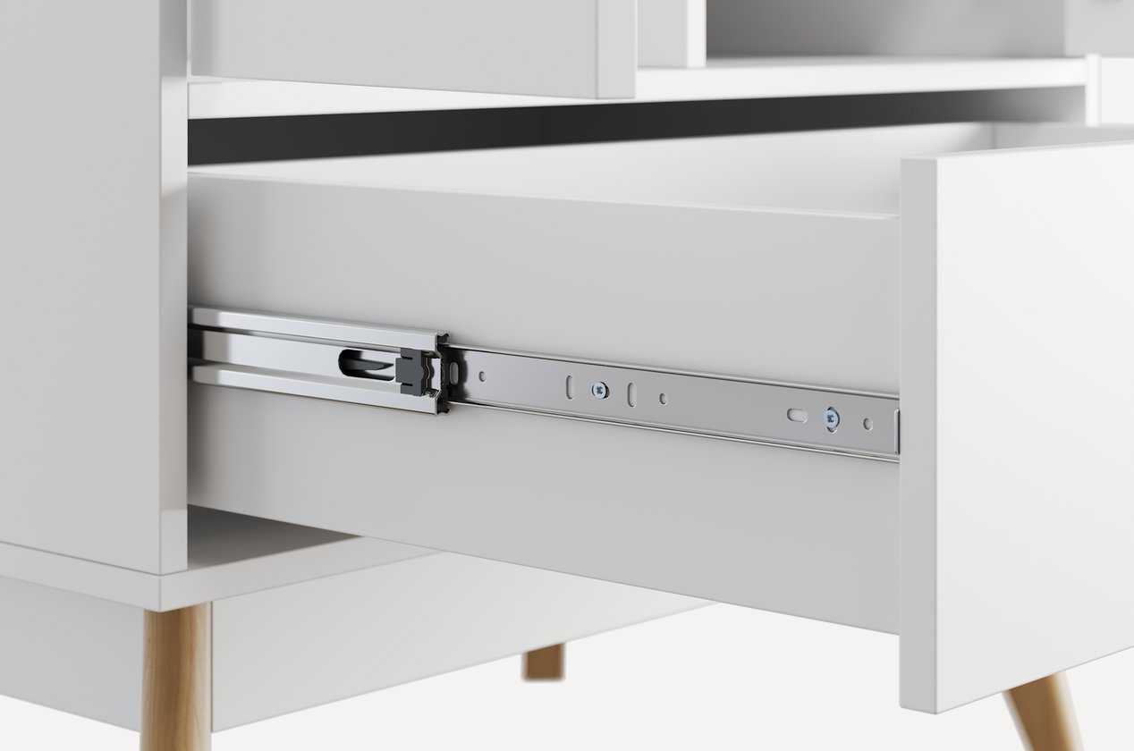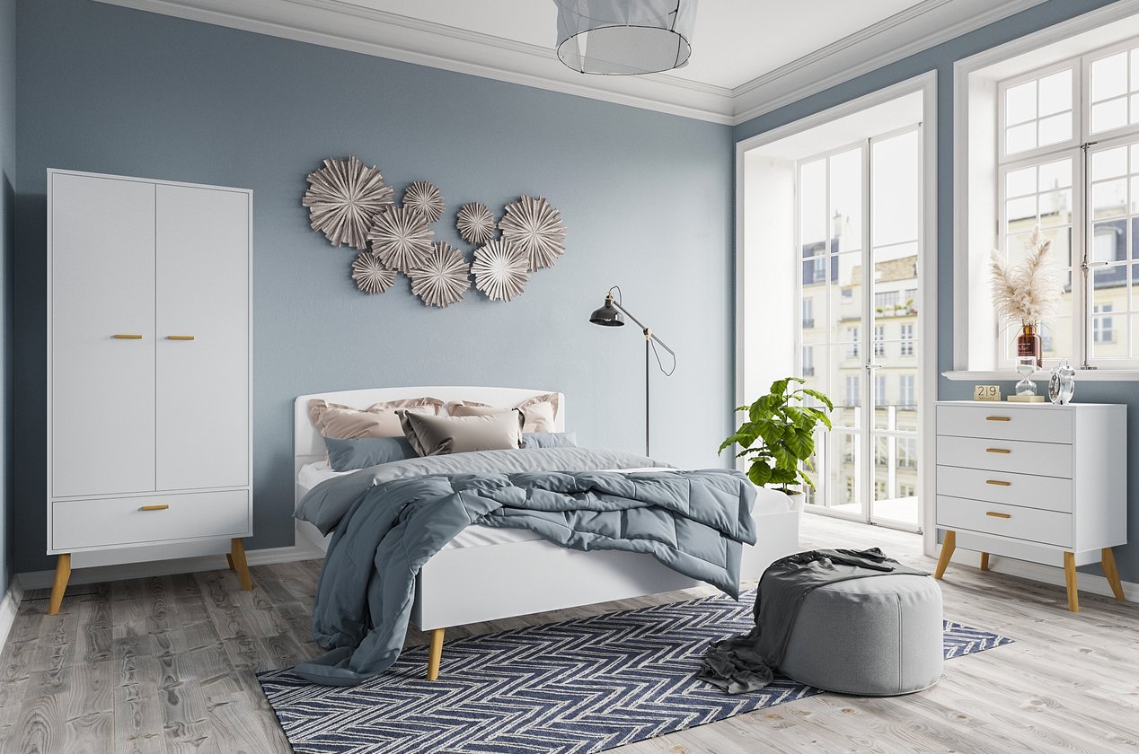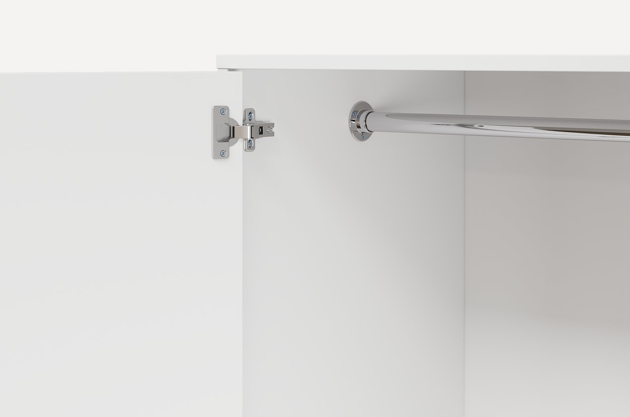 Вместительный и удобный распашной шкаф «Нордик» сочетает в себе продуманную конструкцию и современный дизайн. Внутри шкафа комфортно расположены полки и штанга для вешалок, а в нижней части находится выдвижной ящик. Благодаря отсутствию в конструкции сложных элементов и простой прямоугольной форме шкаф не выглядит массивным, а высокие ножки и белые матовые фасады выгодно дополняют образ.