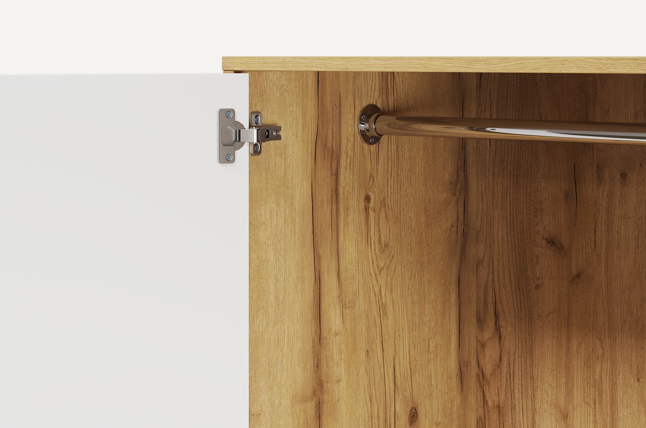 - Грамотное внутреннее наполнение: мы тщательно продумали внутреннее пространство шкафа, чтобы обеспечить максимальную вместительность и лёгкий доступ к вещам.
