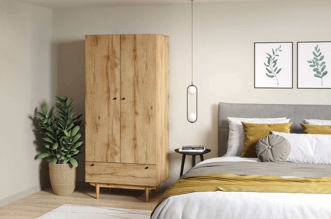 Распашной шкаф «Пронто-3-130-210» Дуб Сонома / Белый