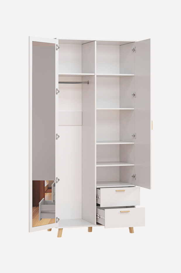 Распашной шкаф – классическое решение для хранения одежды и личных вещей. Надежность и простота конструкции гарантируют долгий срок службы, а грамотное внутреннее наполнение – вместительность и легкий доступ к содержимому. Современный дизайн корпуса и фасадов позволят легко разместить модель в интерьере любой комнаты: гостиной, спальни, прихожей и даже офиса.