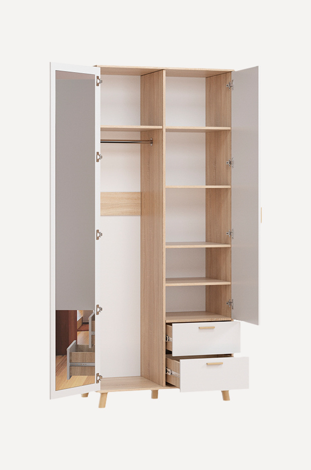 Распашной шкаф – классическое решение для хранения одежды и личных вещей. Надежность и простота конструкции гарантируют долгий срок службы, а грамотное внутреннее наполнение – вместительность и легкий доступ к содержимому. Современный дизайн корпуса и фасадов позволят легко разместить модель в интерьере любой комнаты: гостиной, спальни, прихожей и даже офиса.