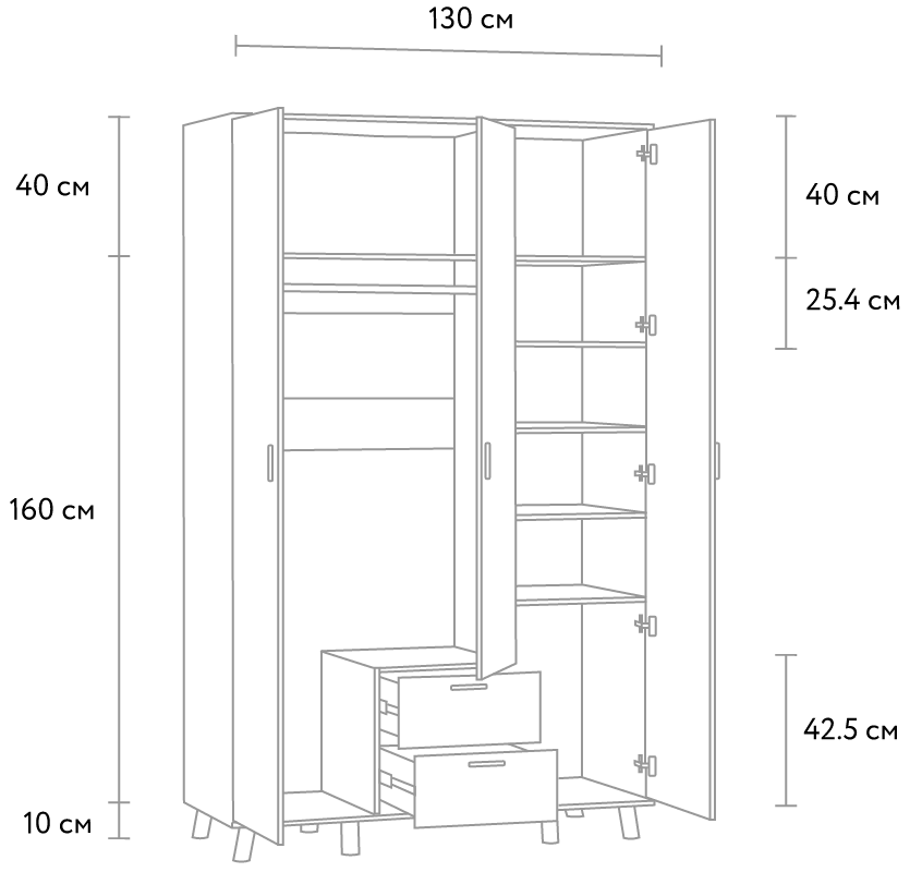 Размер (ШхВхГ): 100х240х100 см. Материал: ЛДСП, МДФ.