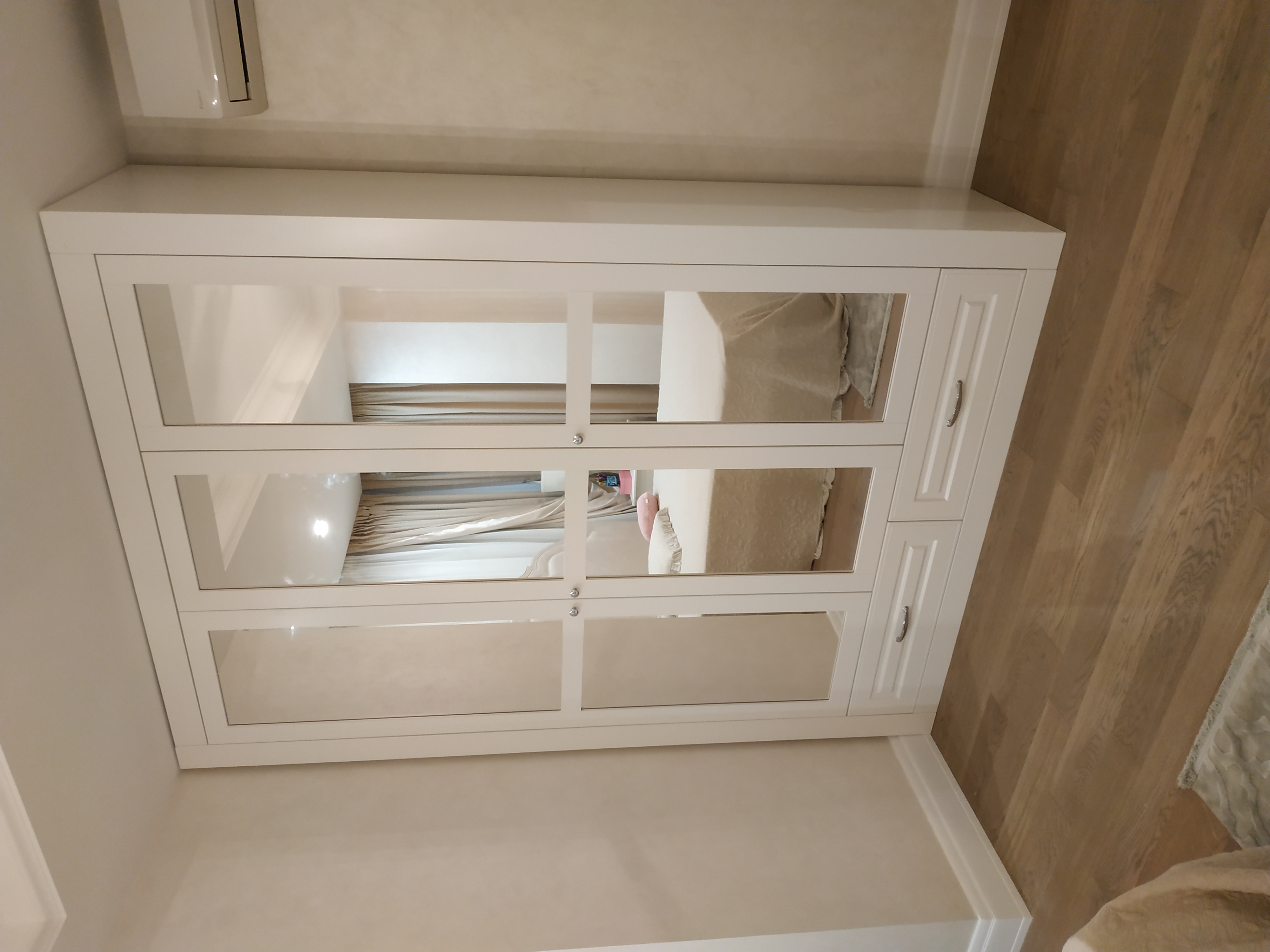 Распашной шкаф с зеркалами и ящиками