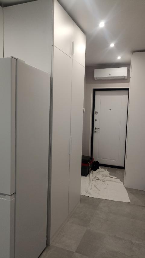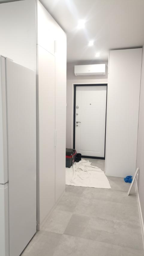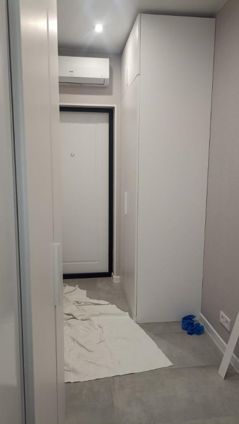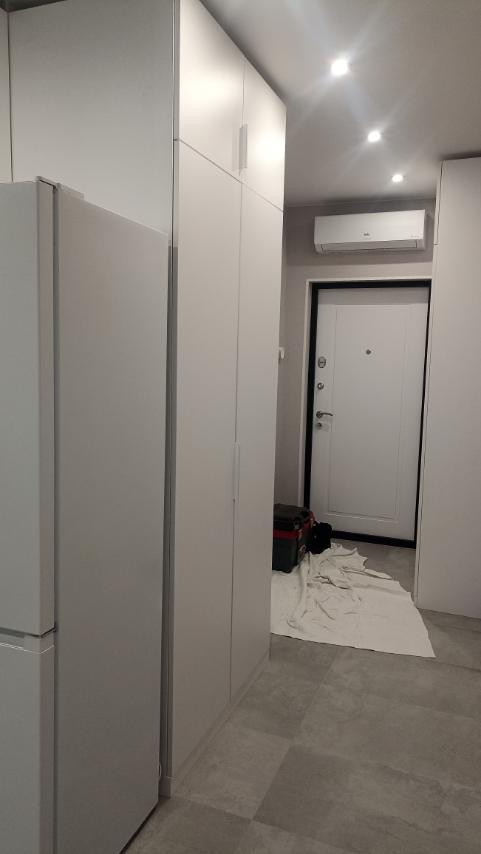 Шкаф исполнен в белом цвете. Фасады: МДФ ПВХ с фрезеровкой.