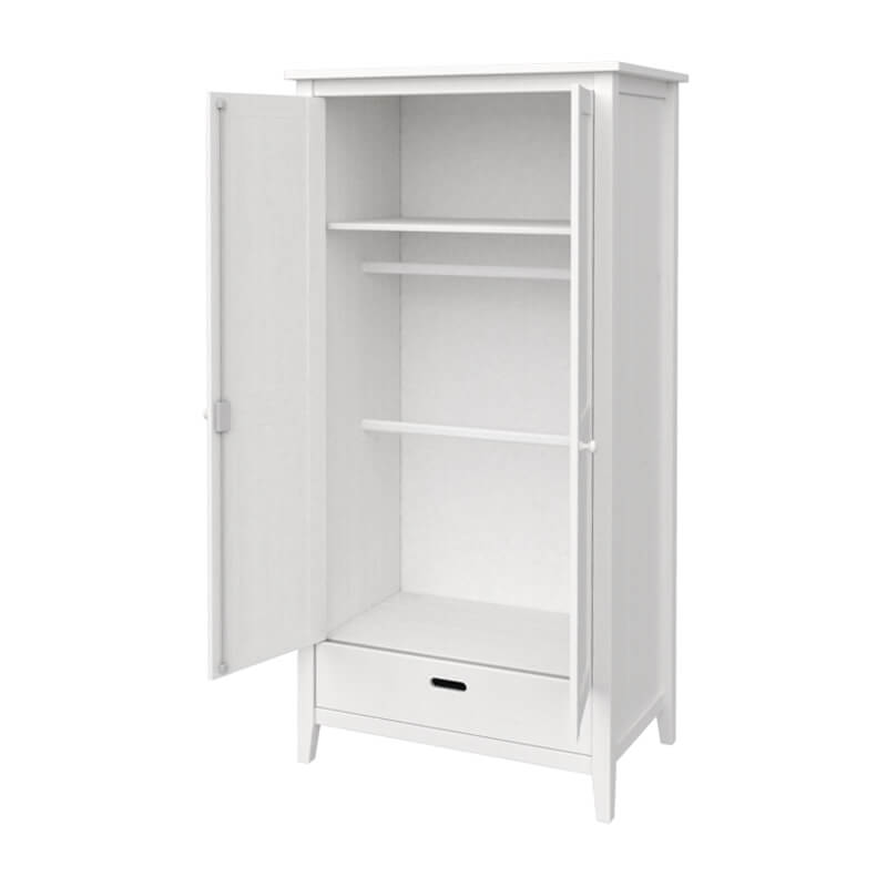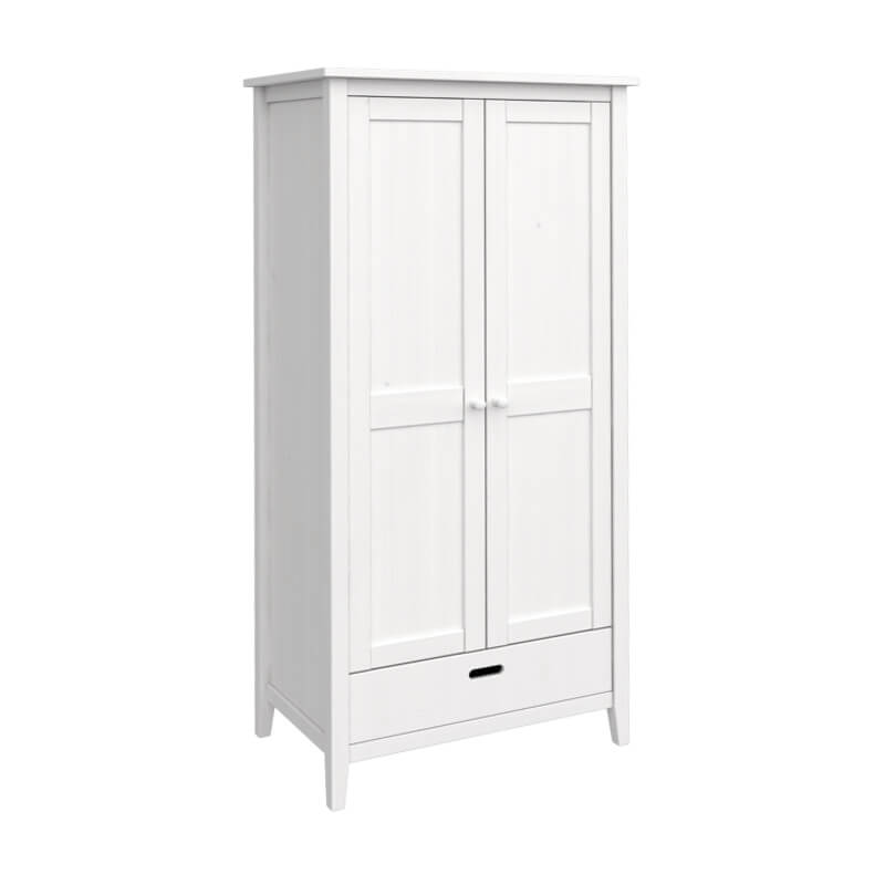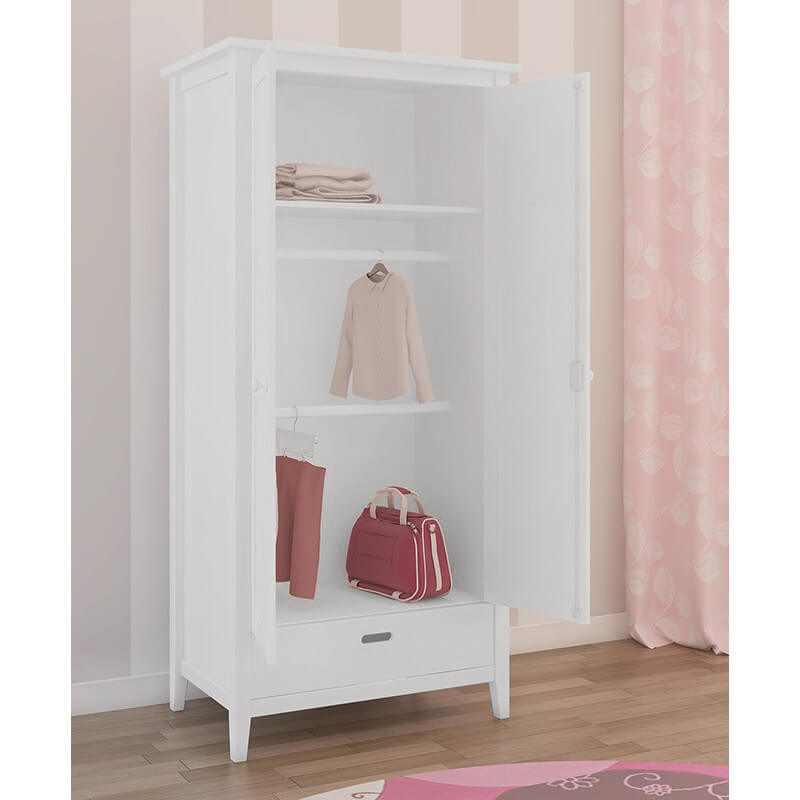 Небольшой шкаф для одежды хорошо вписывается в интерьеры небольших комнат. Прекрасно работает в паре с комодами из серии Сиело. Наполнение - полка (высота 40 см) и 2 съемные штанги для одежды, один выдвижной ящик (глубиной 12 см). Дополнительно может комплектоваться встраиваемыми полками Сиело 77356.