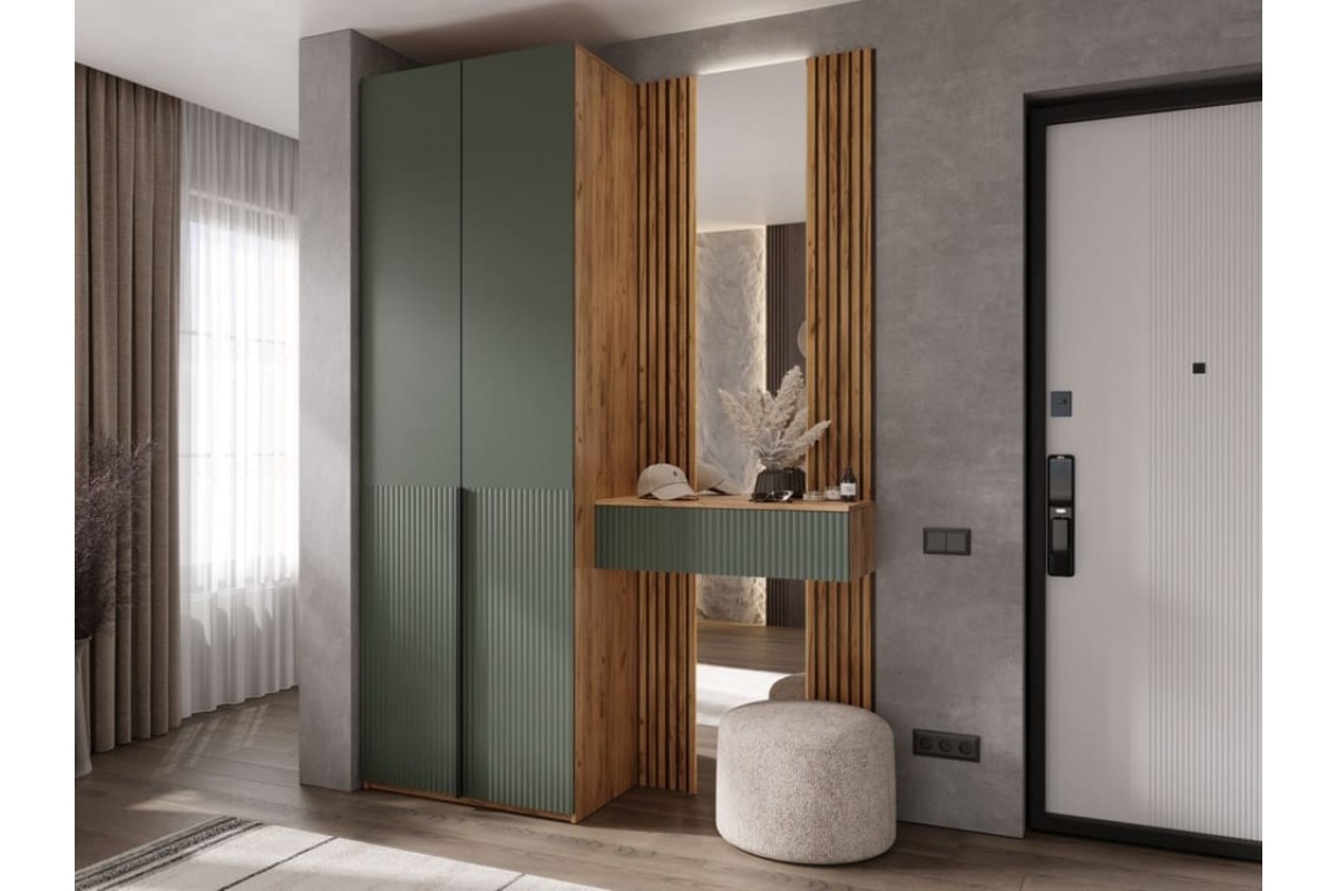 Шкаф 2-х ств и Тумба с зеркалом «Марвэл» (Браш Мени Грин - Дуб Крафт Золотой)