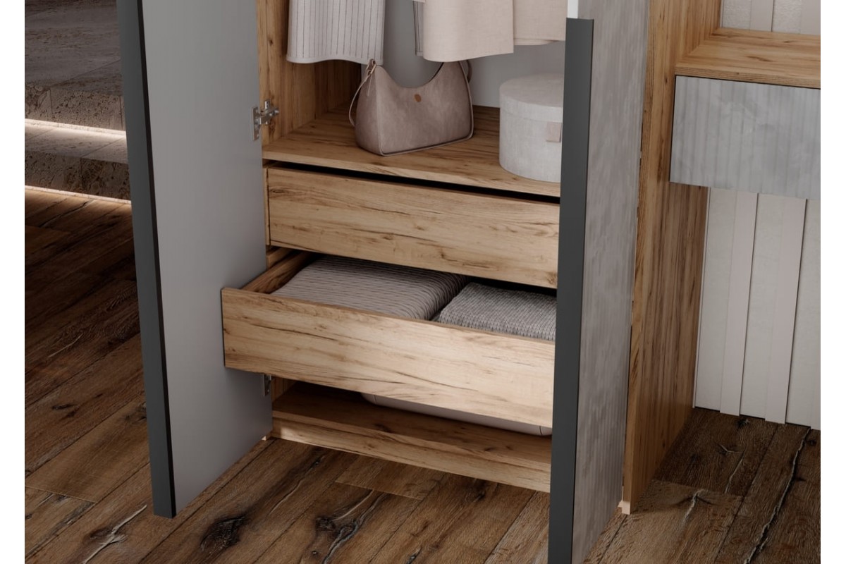Шкаф распашной «Марвэл» 3-х дв высота 240 с доп ящиками (дуб крафт серый - кашемир)