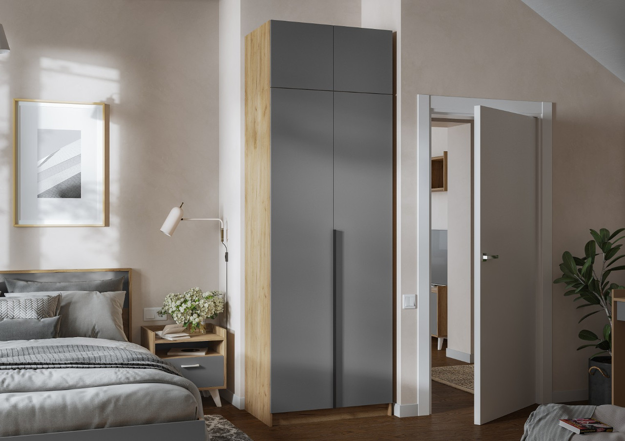 Шкаф 2-х ств. «Лион ШК-01 с антресолью АН-01» Графит серый/Дуб крафт золотой (Стендмебель)