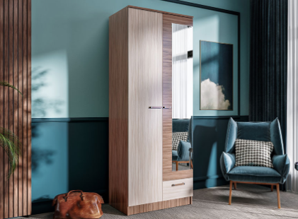 Шкаф 2-створчатый «Адель 0,8м с полками» ясень шимо темный/ясень шимо светлый
