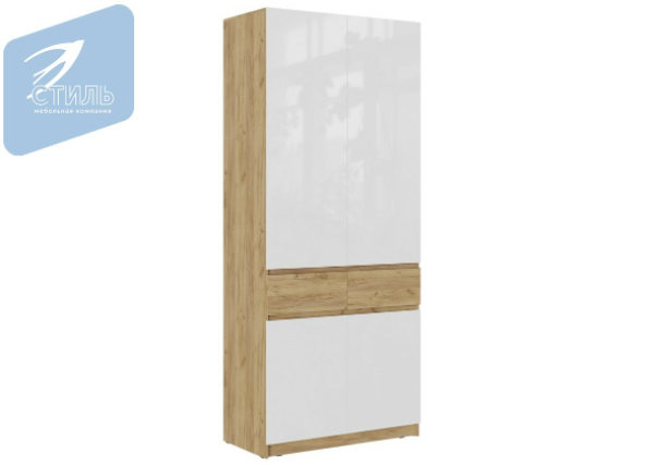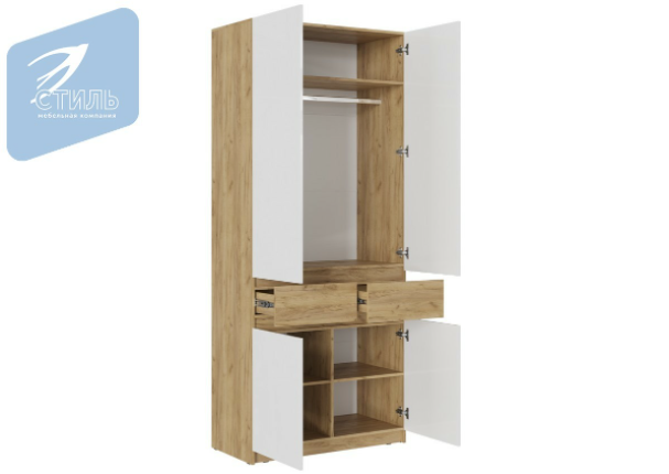Шкаф «Марвэл» 4-х створчатый с доп. ящиками - Дуб Крафт / Белый (МИФ)