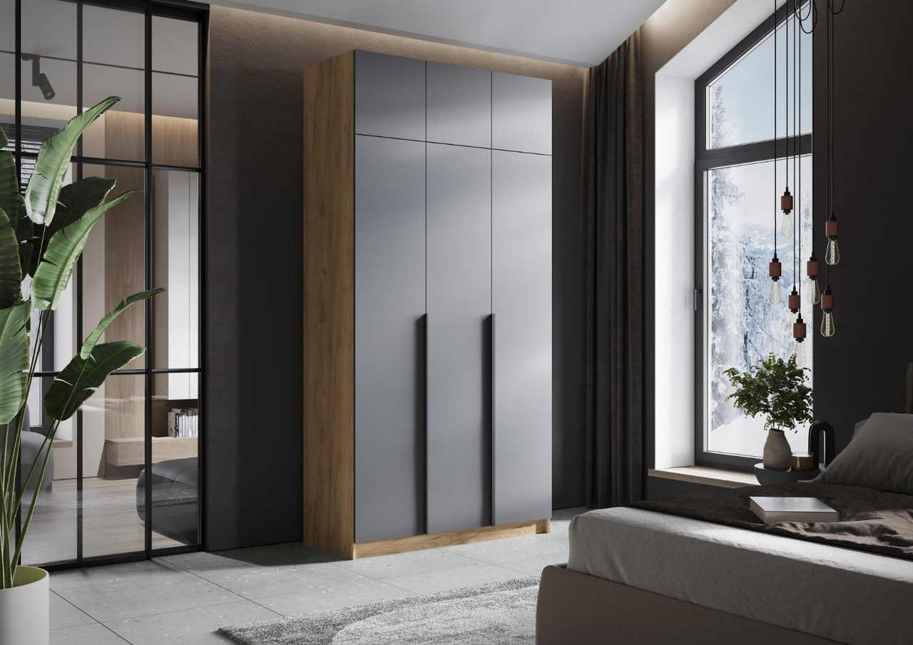 Шкаф 3-х ств. «Лион ШК-02 с антресолью АН-02» Графит серый/Дуб крафт золотой (Стендмебель)