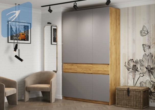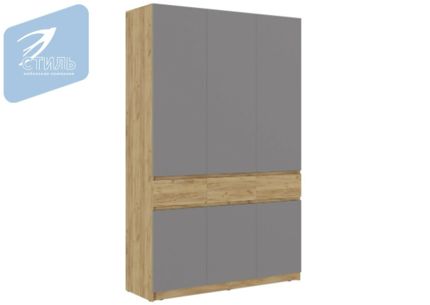 Шкаф 3-створчатый «Бостон ШК-002» дуб крафт золотой/серый шифер - МК-стиль