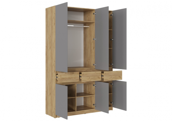 Шкаф Бостон многофункционален и практичен. Благодаря сочетанию нескольких систем хранения вы сможете разместить в нем все что вам необходимо.