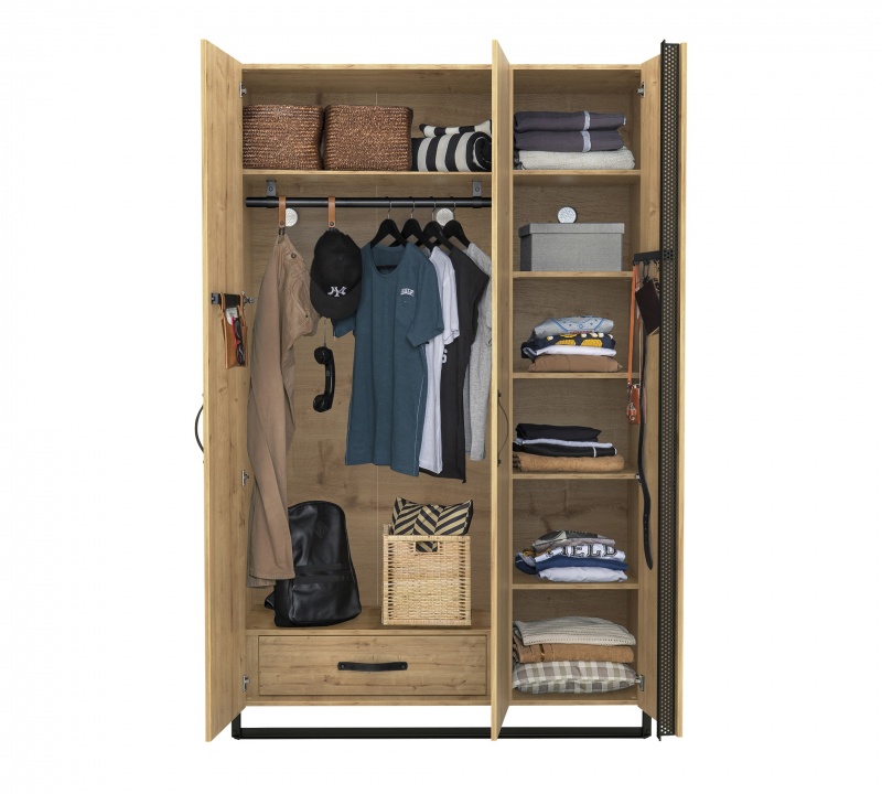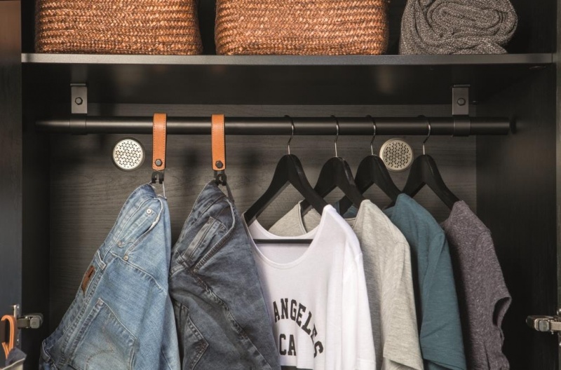 Система хранения данной модели состоит из нескольких отделений, дополненных штангой для вешалок.