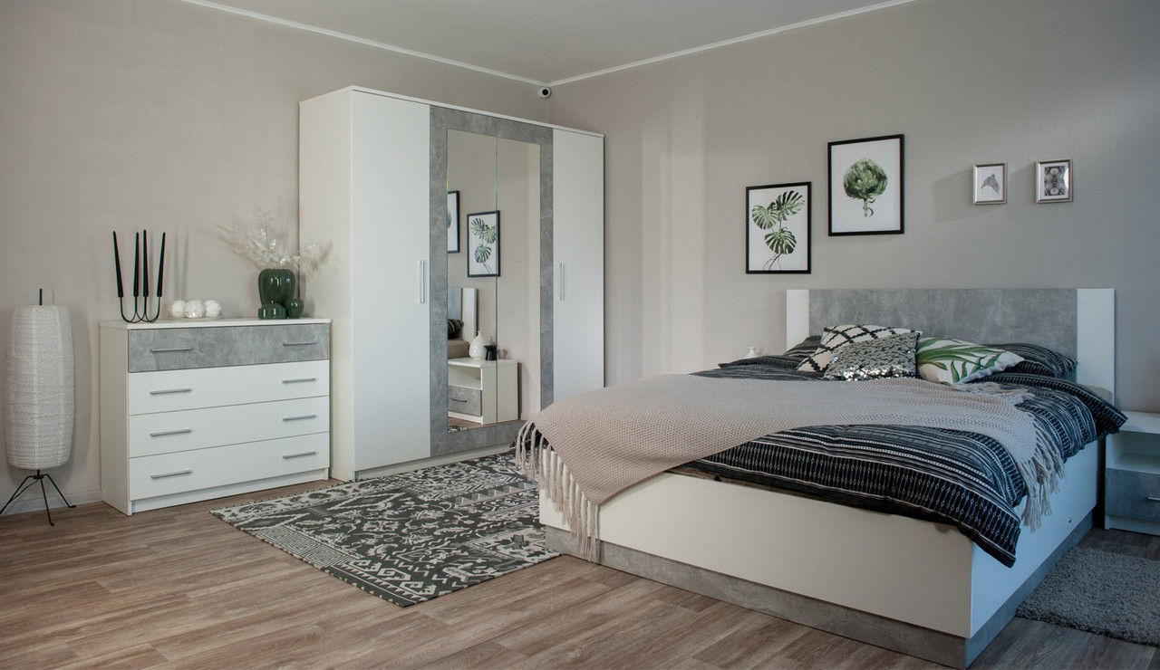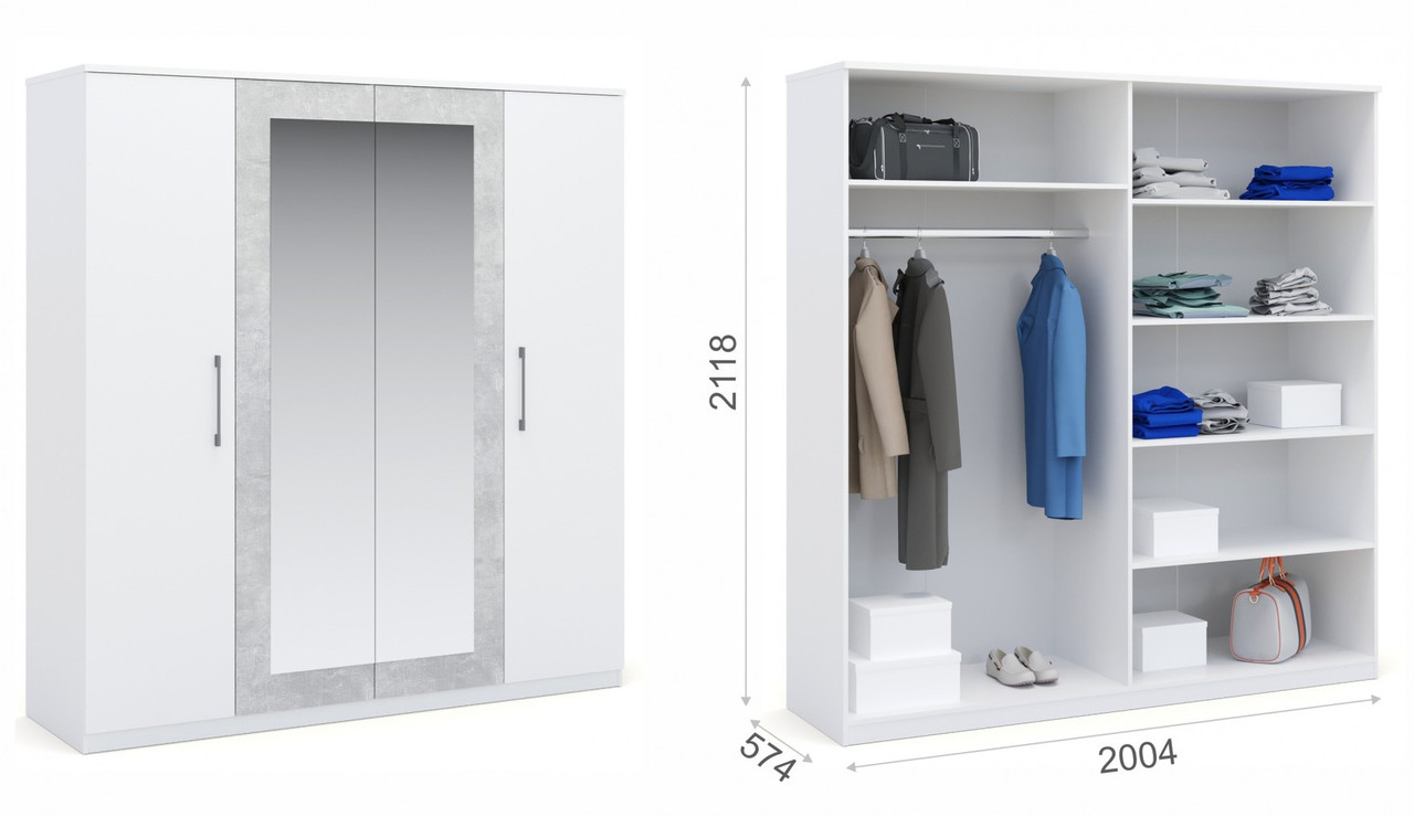 Шкаф 4-дверный «Аврора» белый/Ателье светлый Imperial