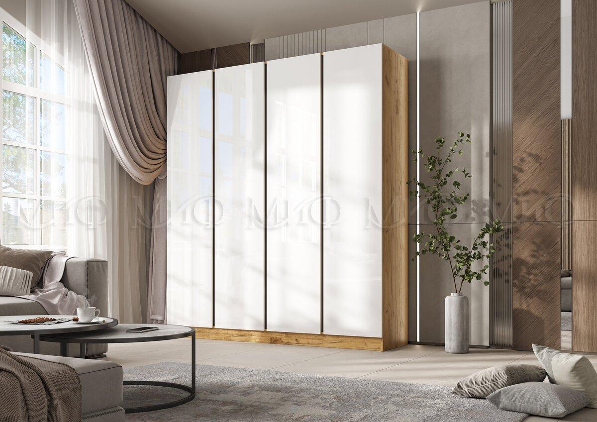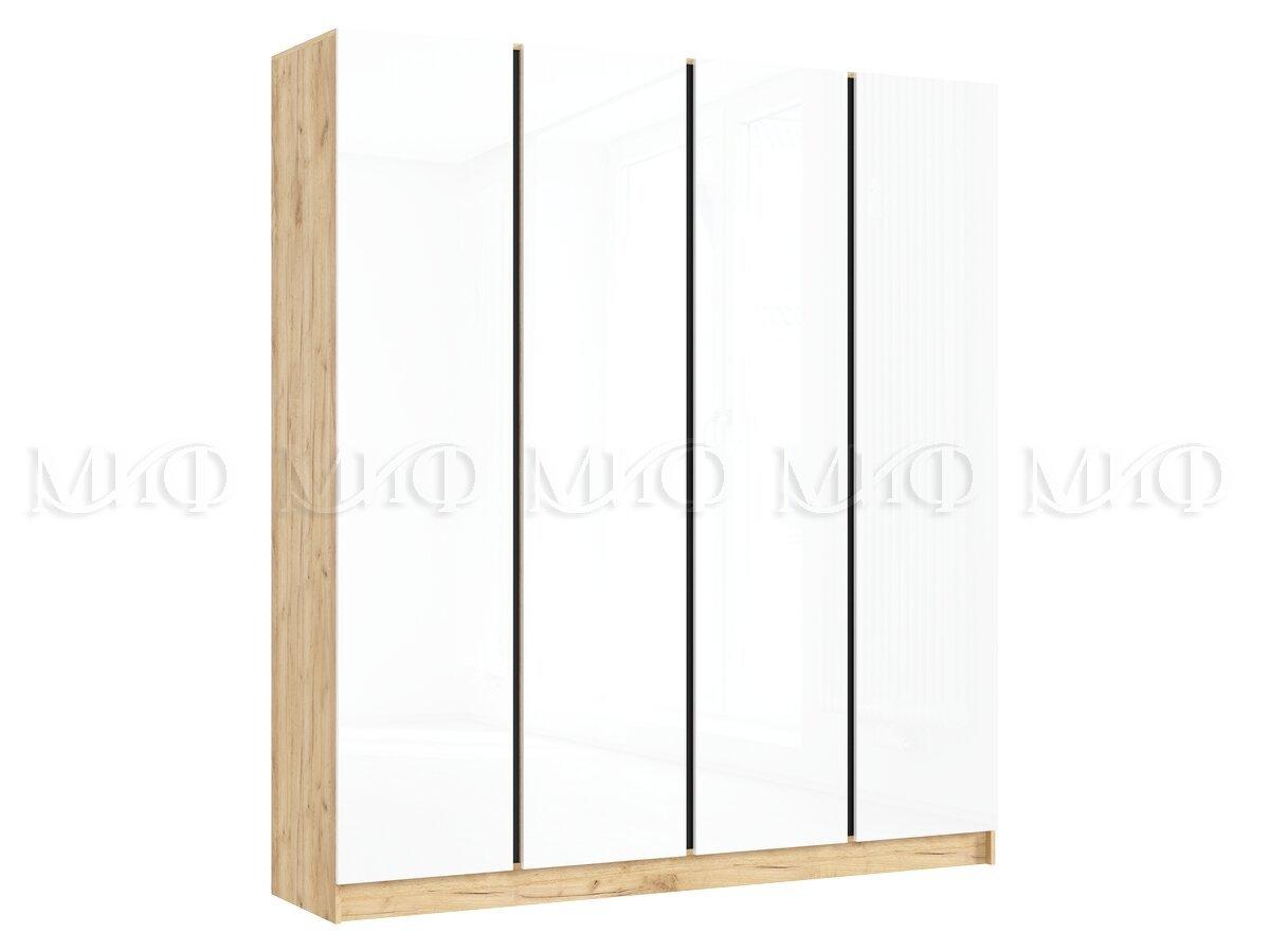 Шкаф 4-х ств. «Келвин» (2000, вставка черная) - Дуб Крафт / Белый глянец (МИФ)