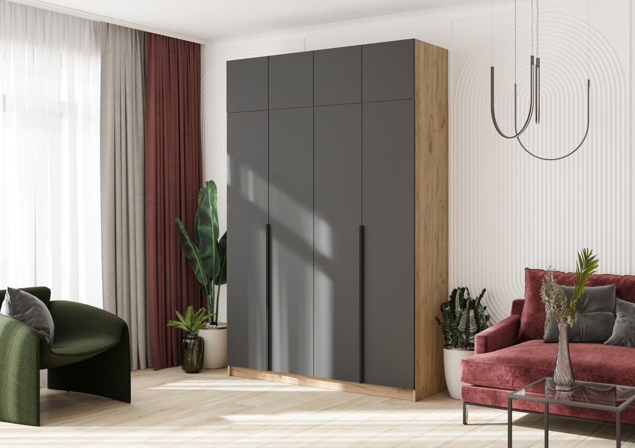 Шкаф 4-х ств. «Лион ШК-03 с антресолью АН-01» Графит серый/Дуб крафт золотой (Стендмебель)