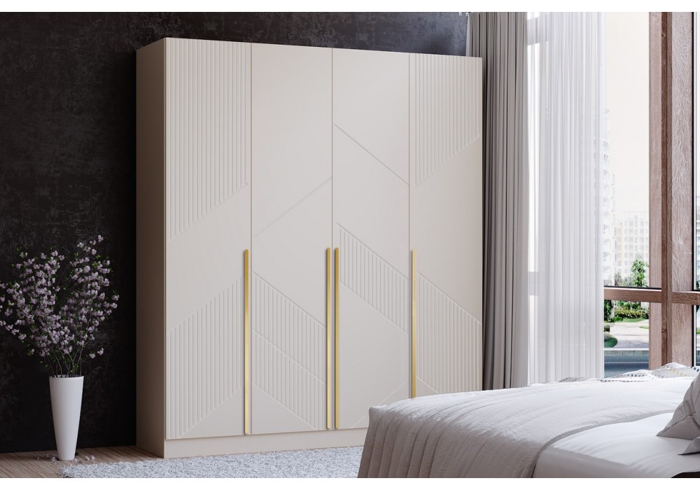 Шкаф 4-х створчатый «Феникс» ФР№2 кашемир\капучино софт (ручки золото)