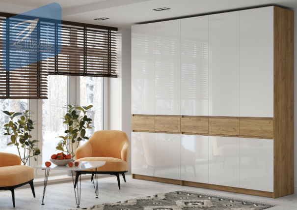 Шкаф 5-створчатый «Бостон ШК-001+ШК-002» дуб крафт золотой/белый глянец - МК-стиль