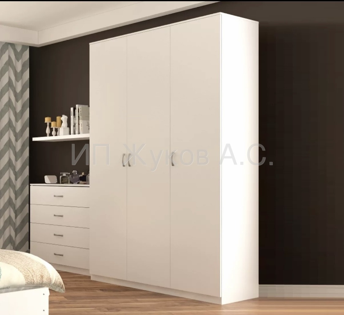 Трехдверный распашной шкаф для одежды в светлом оттенке «Бадега» – это воплощение элегантности и удобства в каждой детали!