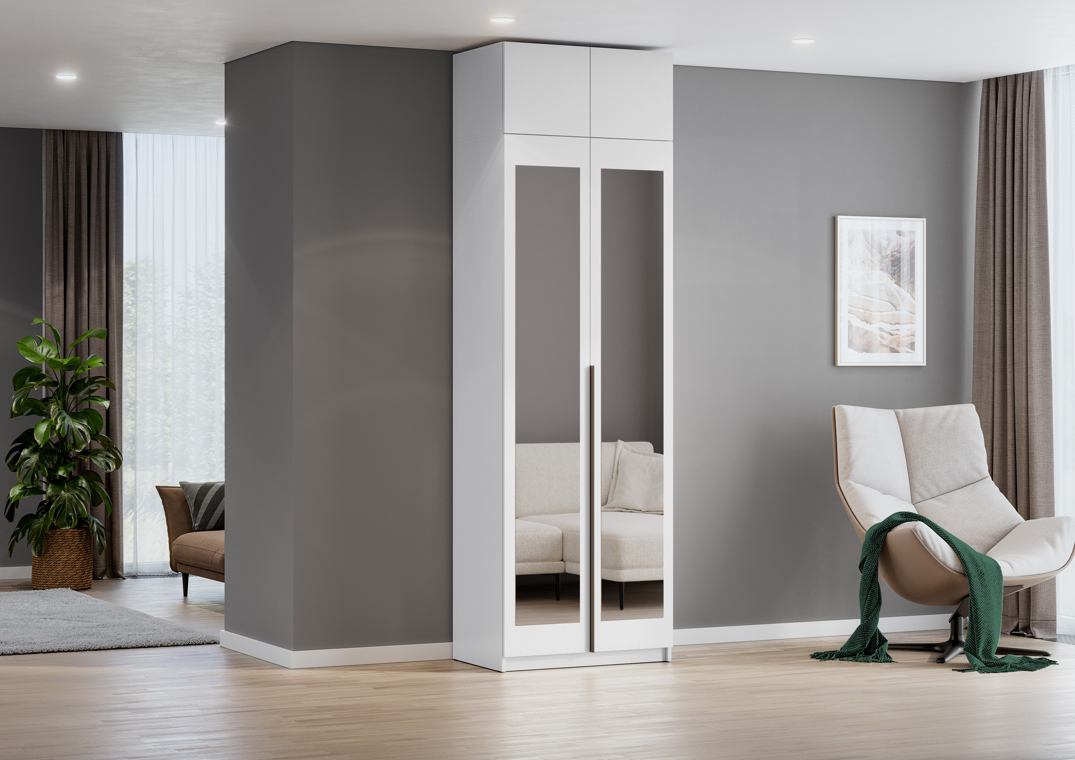 Шкаф можно дополнить полками (комплект полок Берген ПРО), антресолью, ящиками ВН2Я (Берген ПРО) и зеркалом ЗШК из модульной коллекции Ронда