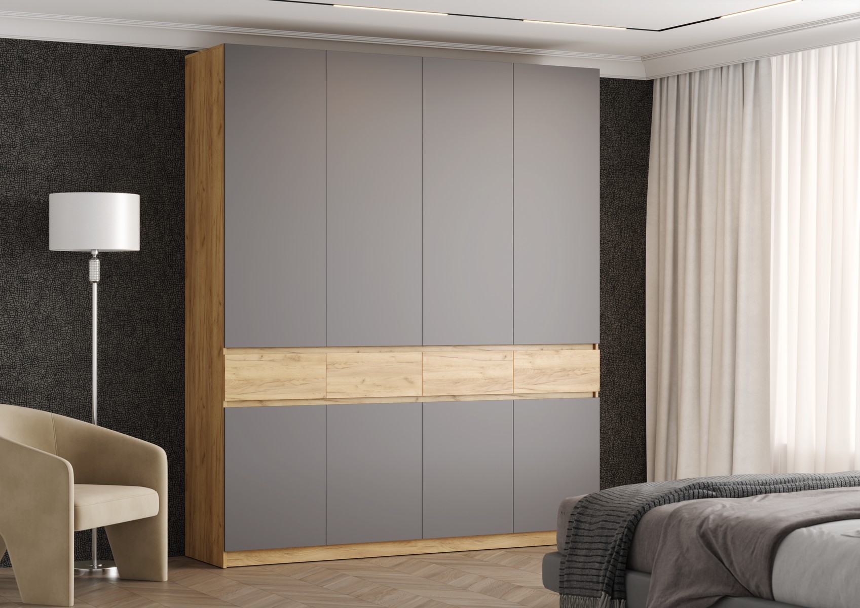Шкаф четырехстворчатый «Бостон ШК-004» (дуб крафт золотой/ЛДСП серый шифер)