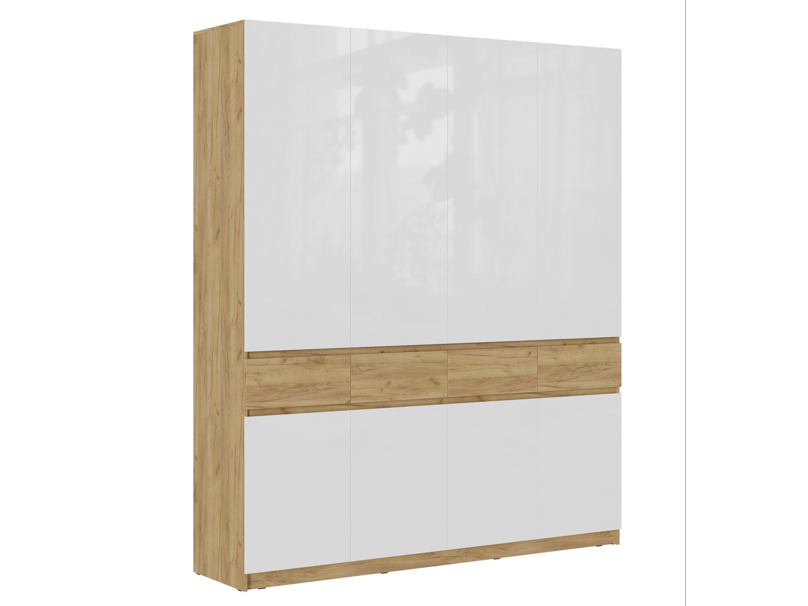 Шкаф четырехстворчатый «Бостон ШК-004» (дуб крафт золотой/МДФ белый глянец)