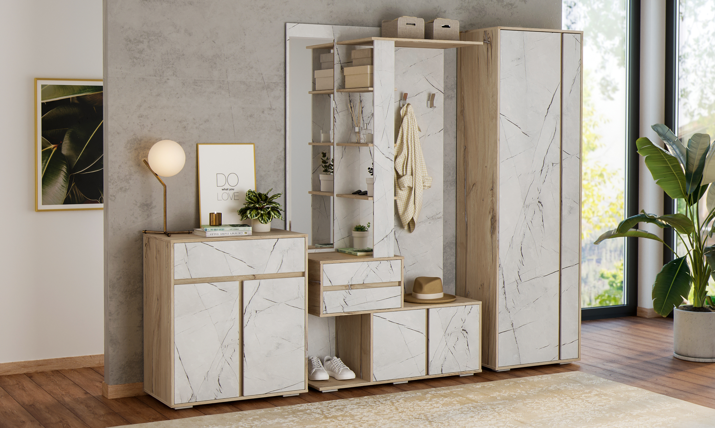 Варианты цвета: Дуб Нокс лайт/Персидский мрамор лайт, Олива/Французская ель.