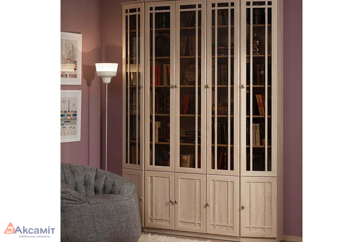 Высокий книжный шкаф можно установить в комнату с высотой потолка не менее 240 см. Высота полок во всех шкафах для книг регулируется, для этого только необходимо установить полкодержатели в подготовленные отверстия. Это позволит поставить на полки книги и альбомы разного формата. Тонированное стекло защищает книги от вредного воздействия солнечных лучей и убережет их от пожелтения.