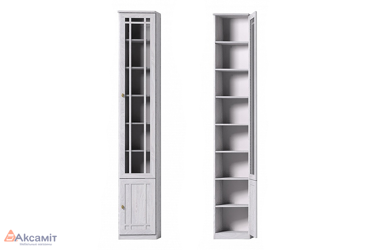Высокий библиотечный шкаф со скосом вправо гармонично завершает компоновку из шкафов библиотеки Sherlock, глубина зауженной части составляет 170 мм.