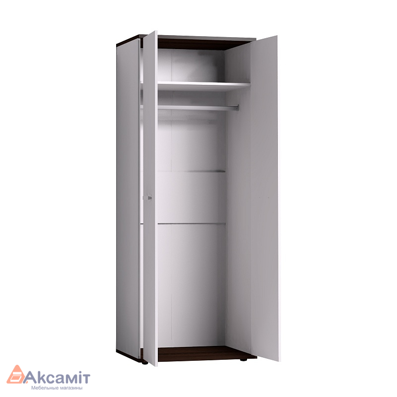 Двустворчатый Норвуд 12 Шкаф для одежды в белом декоре будет уместен как в гостиной, так и в спальне. Контрастный белому декор Орех шоколадный верхней и нижней деталей шкафа придает изюминку этому модулю. Внутреннее наполнение небольшого шкафа состоит из стационарной штанги длиной 757 мм и верхней полки. Распашные фасады шкафа открываются за светлые ручки из массива дерева.