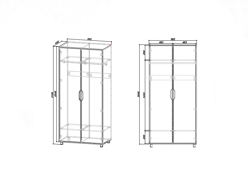 Размер: 982х2108х580 мм. Материал: ЛДСП.