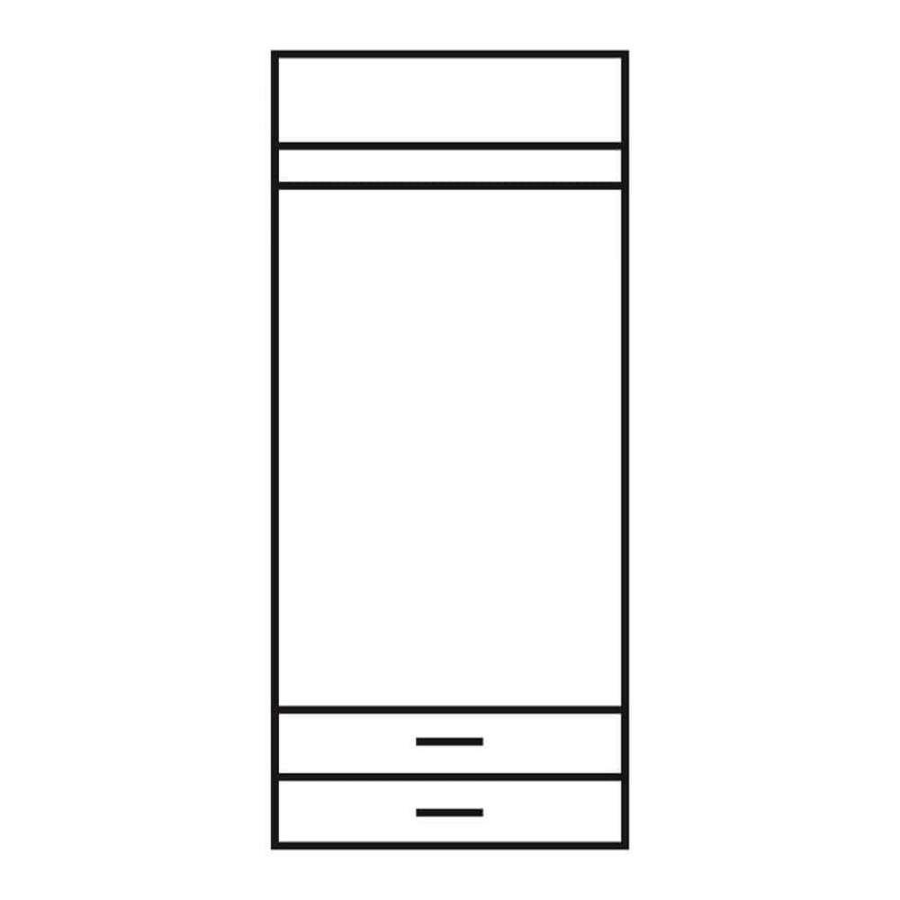 Шкаф имеет одно отделение с полками и вешалкой. Габариты: 500 х 2200 х 450 мм.