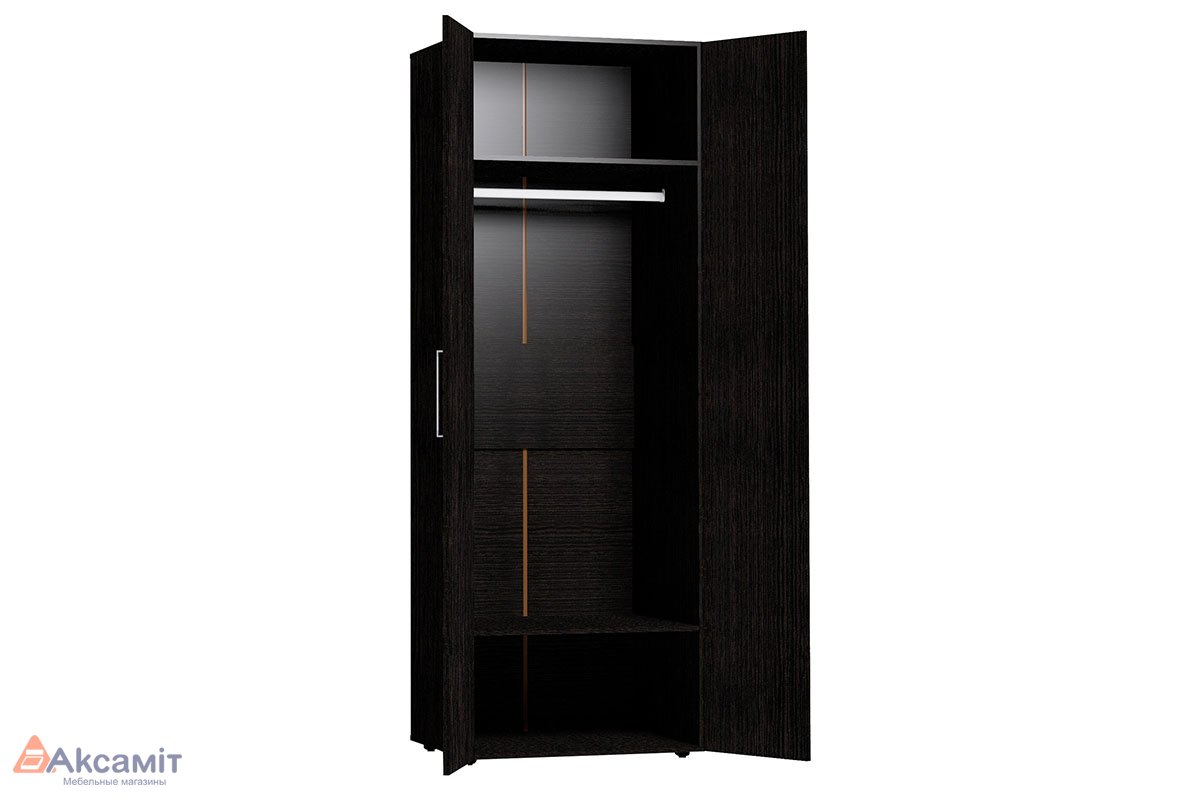 Широкий, распашной шкаф благодаря современным планировкам квартир, всегда найдет свое место в спальне. Глухой фасад дверей шкафа декорирован светлыми металлическими ручками, что обеспечивает ему привлекательный внешний вид. Внутри шкаф оснащен 2-мя полками и стационарной штангой 757 мм, что прекрасно подойдет для хранения большого объема одежды и белья. Для надежности конструкция крепится на стену за подвесы, а регулируемые опоры шкафа позволят компенсировать незначительные неровности пола.