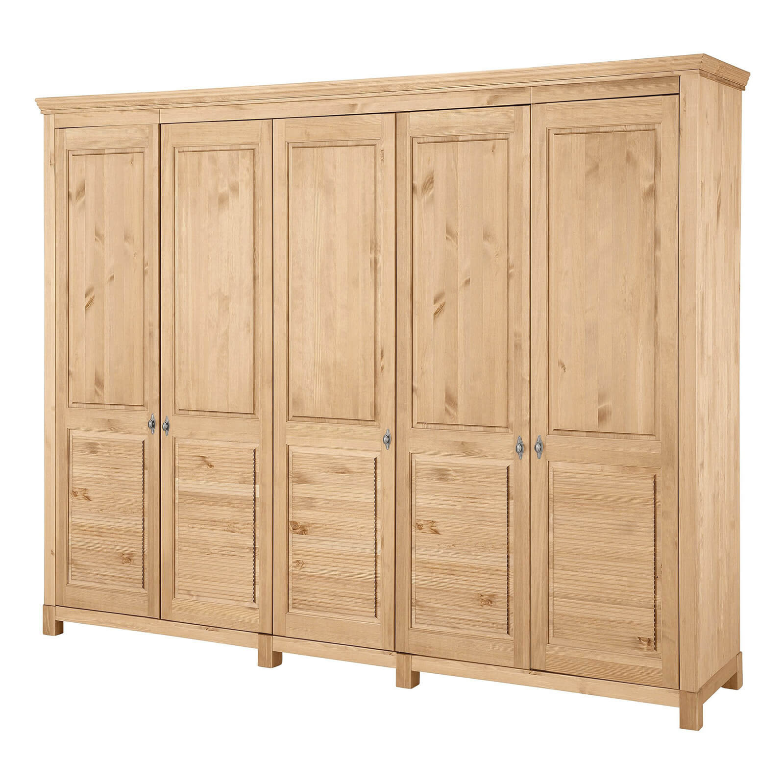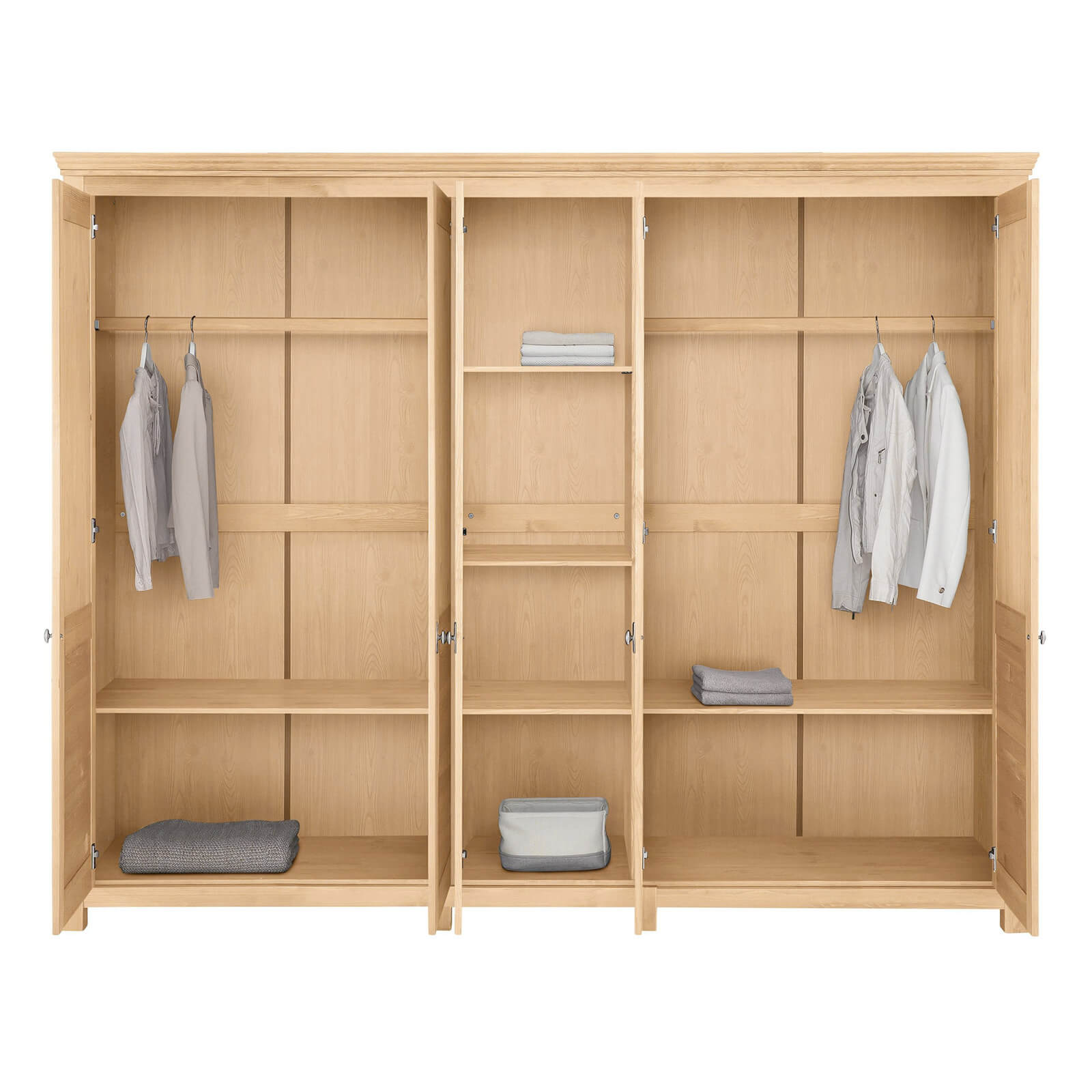 Этот шкаф из коллекции “Рауна” отлично подходит для небольших пространств, используя его максимально эффективно и визуально увеличивая. За пятью распашными дверями находятся два отделения для одежды со штангами и шесть полок для других вещей, включая головные уборы и обувь. Такое изделие удачно впишется в любой современный интерьер.